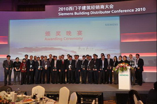 在西門子(中國)有限公司舉辦的成都青城山“2010西門子樓宇科技集團(tuán)經(jīng)銷商大會(huì)”期間我公司喜獲“西門子建筑CPS BU佳經(jīng)銷商獎(jiǎng)”。